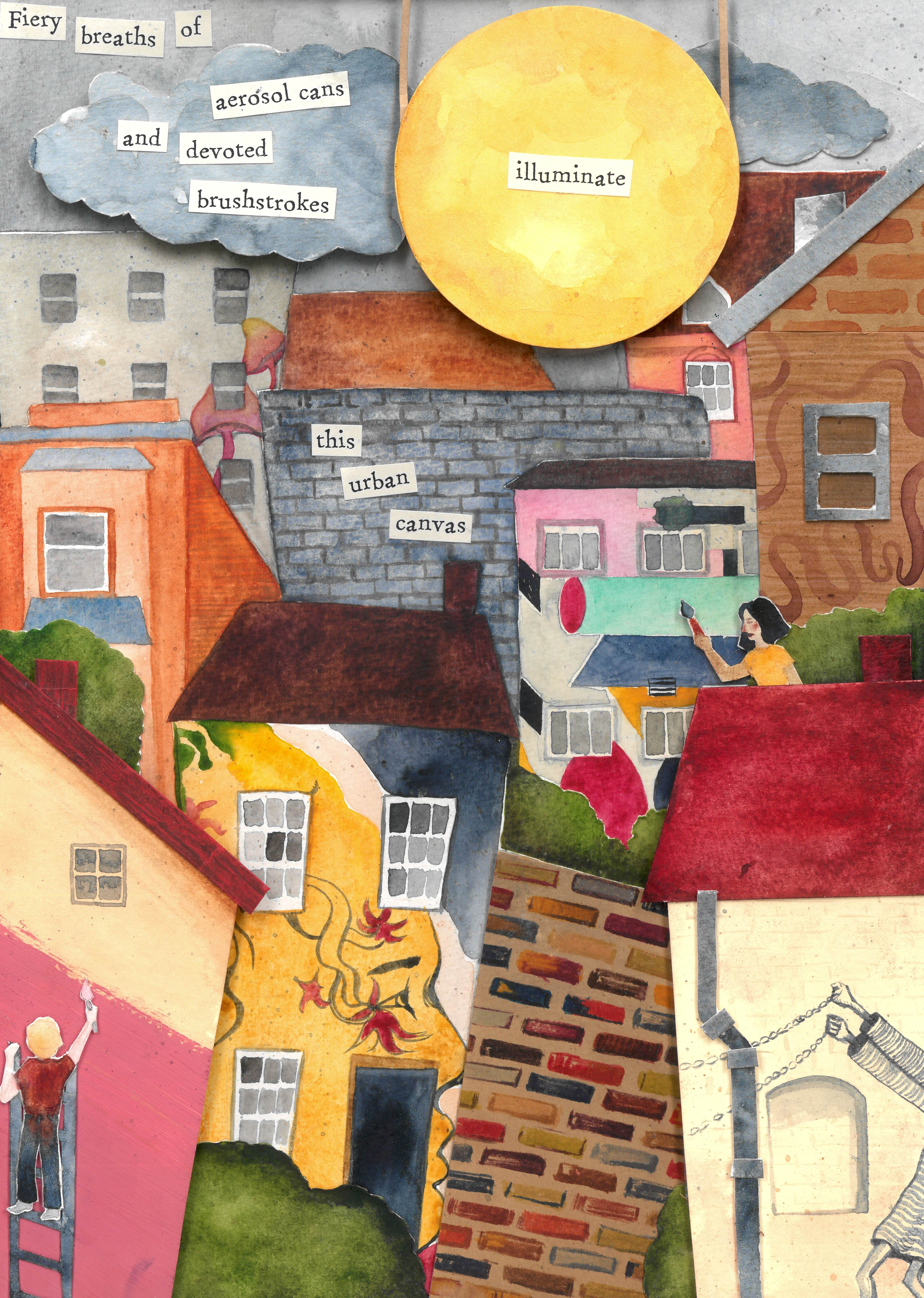 "On an April afternoon, I took a trip to Peckham. Almost every alleyway, wall, and crevice was painted, all wild with colour and light. I wondered what worlds were hidden within this urban canvas. It spoke to me then—a million experiences, all translated into the universal language we call art. Take a breath, look around. Everything is illuminated."